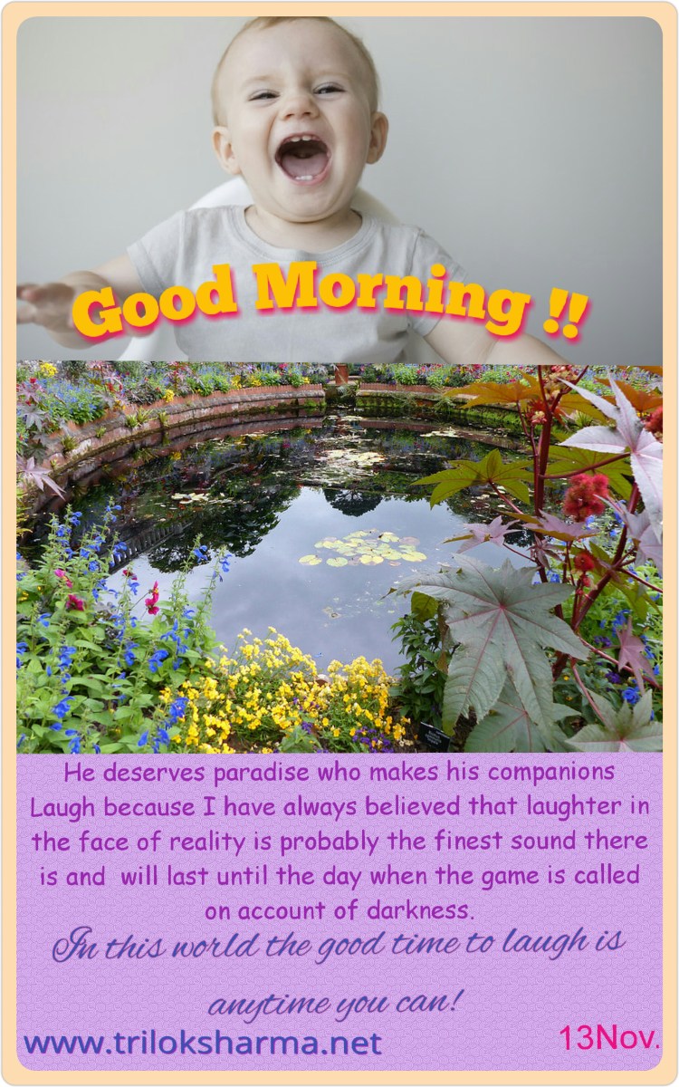 Posted byDR. TRILOK SHARMAPosted inGood Morning, LifeTags:darkness, finest sound, good time to laugh, Laugh, paradise