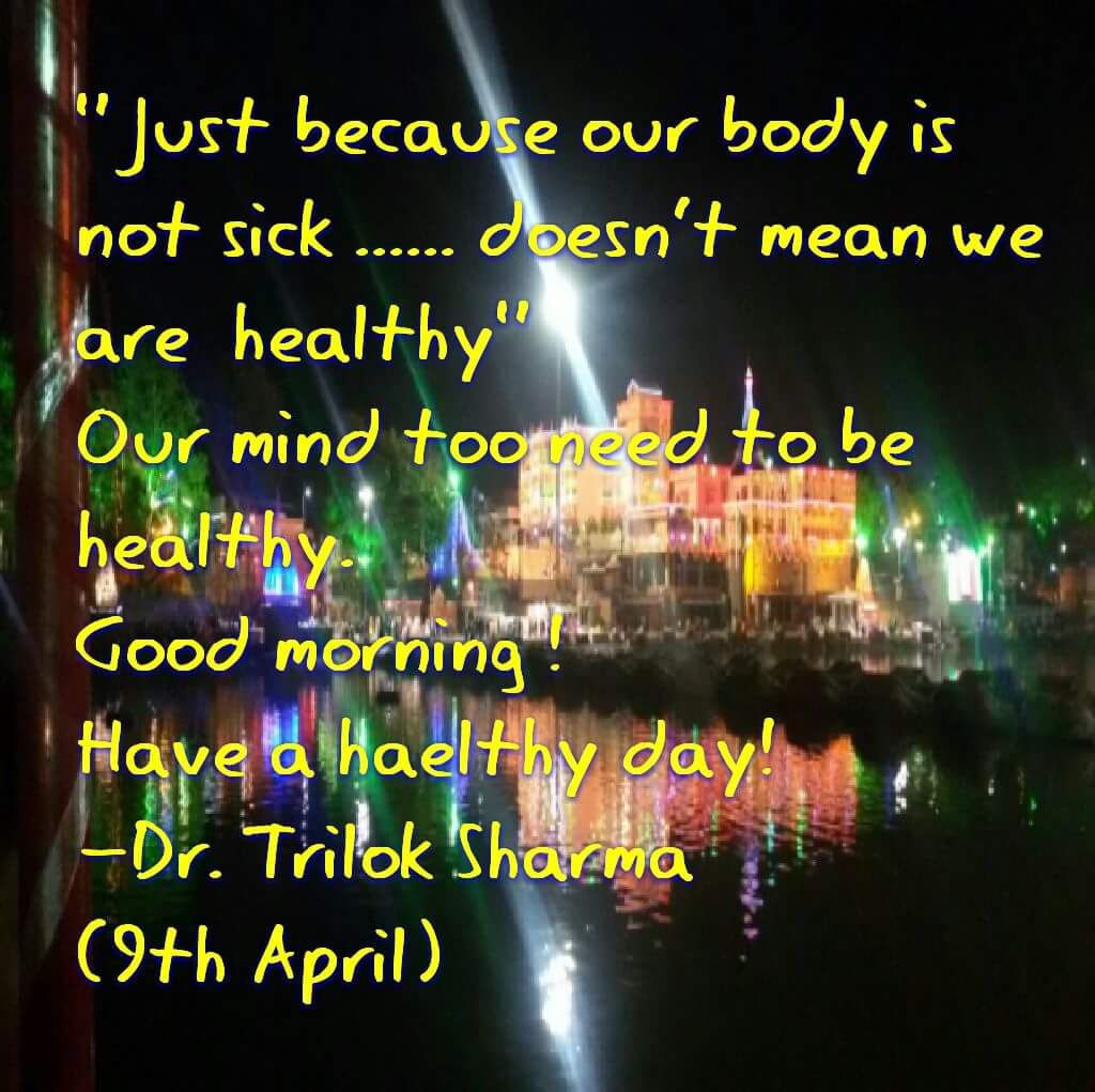 As I am growing older, I am having encounters with many people who are physically fit and healthy, but their mind cannot be declared as Healthy. I now understand that “Just because your body is not sick, doesn’t mean that you are healthy. Your mind too needs to be healthy”.