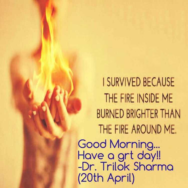For a survivor, life is full of fire and flames!! I read somewhere, “what I need to survive is not Gale’s fire, kindled with rage and hatred. I have plenty of fire myself. What I need is the dandelion in the spring. The bright yellow that means rebirth instead of destruction. The promise that life can go on, no matter how bad our losses. That it can be good again. And only Peeta (a fiction character of Hunger Games) can give me that.”