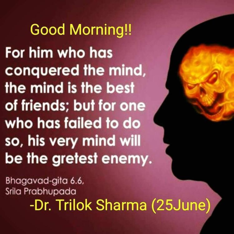 विश्व के सर्वश्रेष्ठ प्रबंधन गुरु श्रीकृष्ण के अनुसार यदि हमने अपने मन सहित समस्त इन्द्रियों को अपने वश में कर लिया तो हम स्वयं अपने सबसे बड़े हितैषी मित्र बन सकते हैं लेकिन इसके विपरीत यदि हम अपनी इन्द्रियों के वश में हो गए तो हमे किसी बाहरी शत्रु की आवश्यकता ही नही पड़ेगी क्योंकि ऐसी अवस्था मे हम से बड़ा हमारा कोई शत्रु हो ही नही सकता।