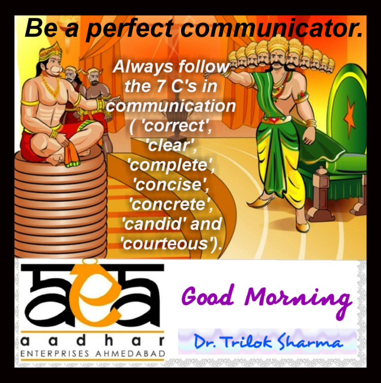 According to Francis T. Bergin, A well-known expert in communication, the seven C’s are the essentials of communication. It should be ‘correct’, ‘clear’, ‘complete’, ‘concise’, ‘concrete’, ‘candid’ and ‘courteous’. Don’t these tally with the advice of Valmiki who wrote centuries ago in his timeless epic?