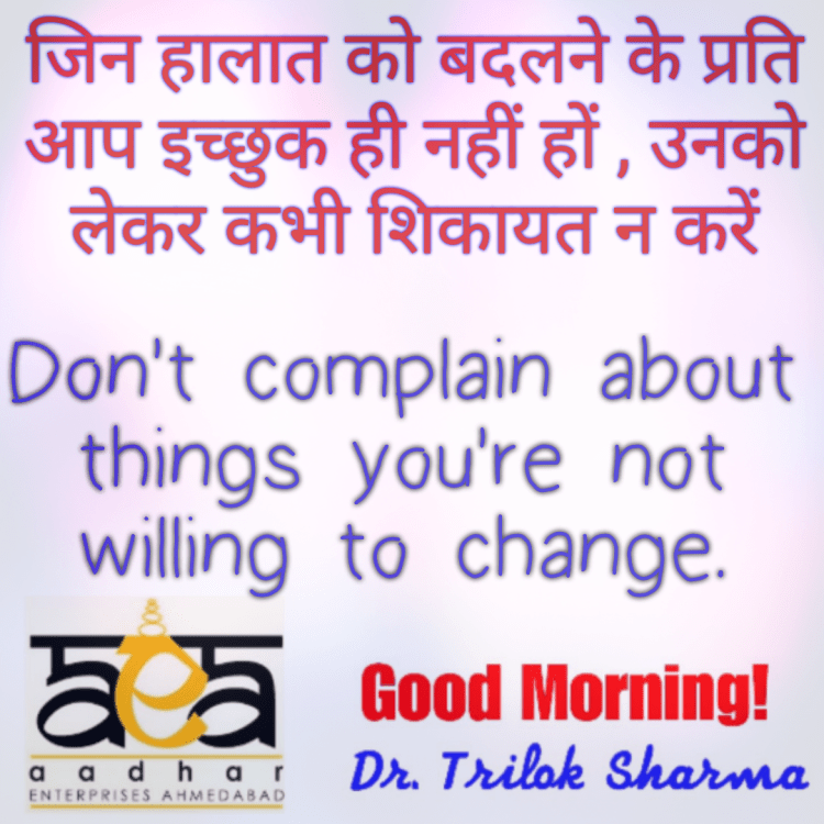 जिन हालात को बदलने के प्रति आप इच्छुक ही नहीं हों , उनको लेकर कभी शिकायत न करें