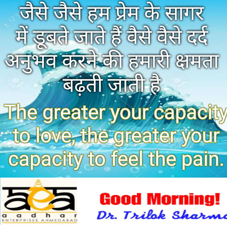जैसे जैसे हम प्रेम के सागर में डूबते जाते हैं वैसे वैसे दर्द सहने की हमारी क्षमता बढ़ती जाती है