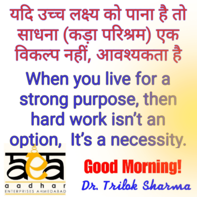 यदि उच्च लक्ष्य को पाना है तो साधना (कड़ा परिश्रम) एक विकल्प नहीं, आवश्यकता है।
