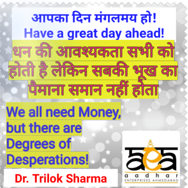 धन की आवश्यकता सभी को होती है किंतु सभी की लालसा का पैमाना अलग अलग होता है।