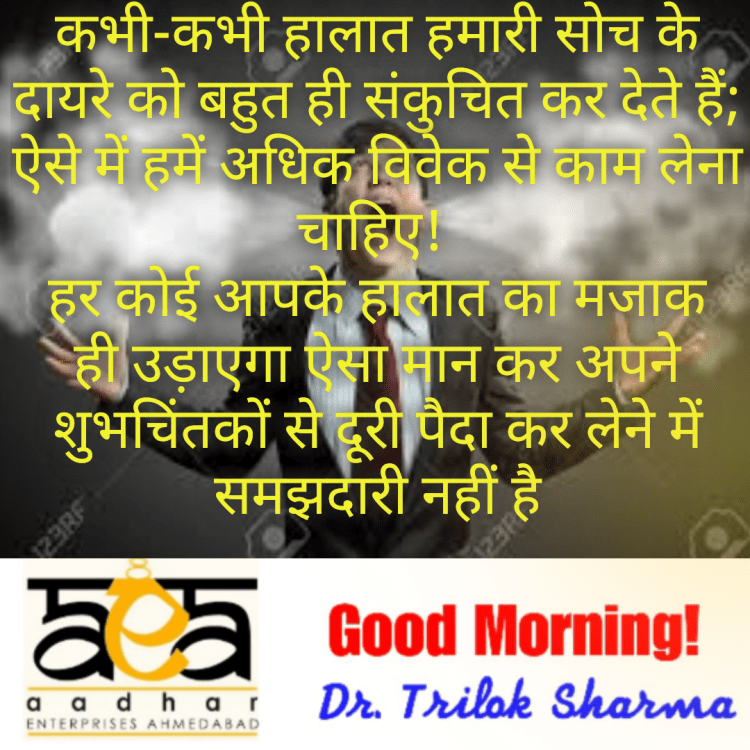 हर कोई आपके हालात का मजाक ही उड़ाएगा ऐसा मान कर अपने शुभचिंतकों से दूरी पैदा कर लेने में समझदारी नहीं है…..