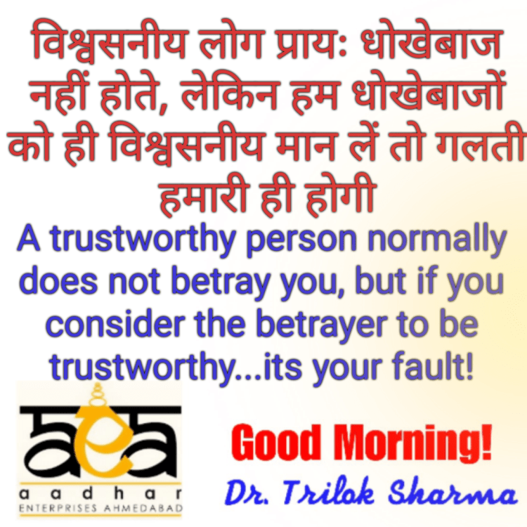 विश्वसनीय लोग प्रायः धोखेबाज नहीं होते, लेकिन हम धोखेबाजों को ही विश्वसनीय मान लें तो गलती हमारी ही होगी